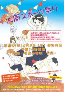 第1回 大原スポーツ祭り2002年(平成14年)は、林町小学校にて開催、初代実行委員長は名取顕一さんでした。ポスターのデザインは第 十中学校生徒さんの作品です。